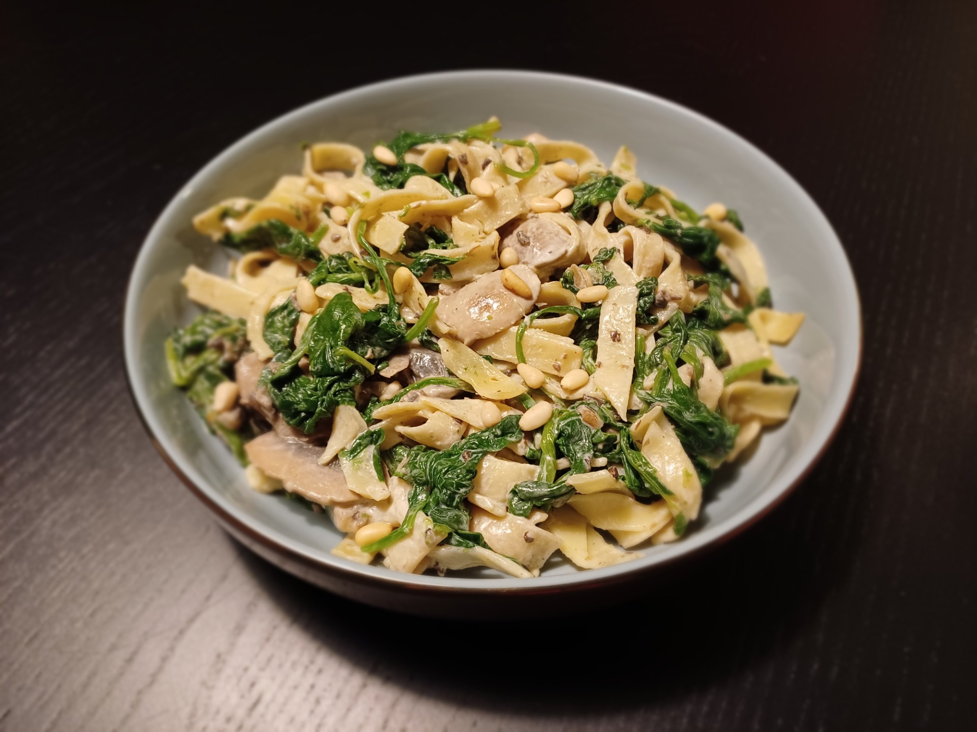 Tagliatelle met een heerlijke truffel roomsaus. Gemaakt van truffeltapenade, verse spinazie en champignons. Dit gerecht is makkelijk te bereiden net zoals al mijn andere gerechten. In plaats van gewone champignons kun je variëren met andere paddenstoelen.